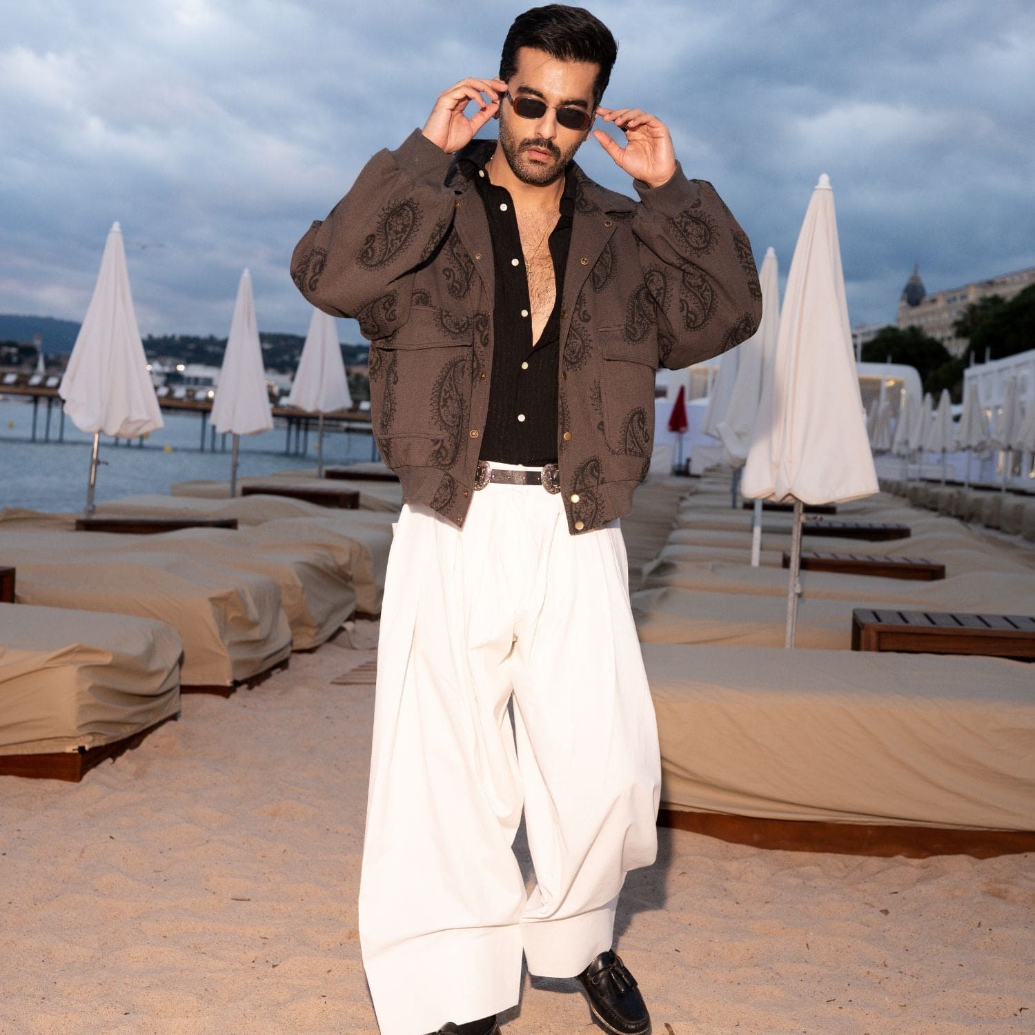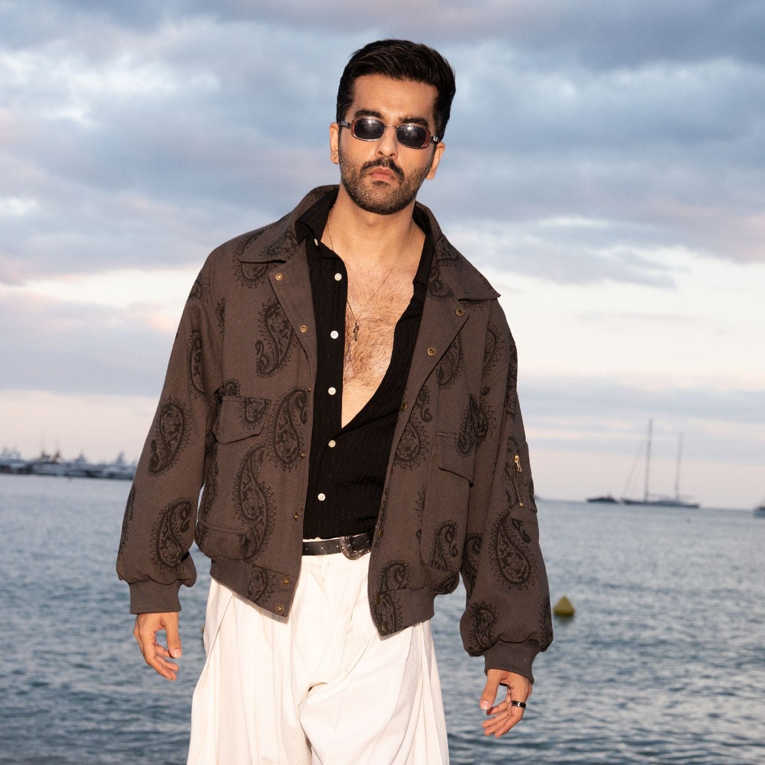 The Ambi Bomber Jacket is a soulful reinterpretation of the classic flight silhouette. Adorned with an all-over, tonal hand-block printed "Ambi" pattern, this statement piece offers a unique, textured character that honors heritage craftsmanship.