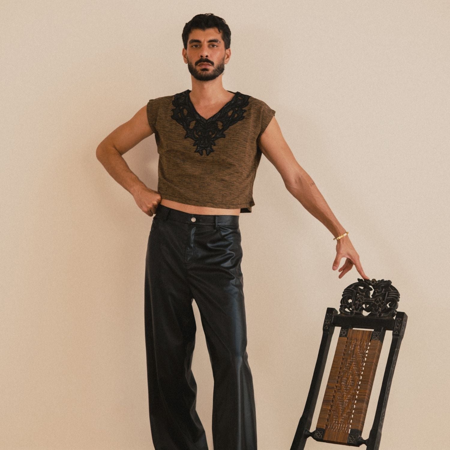 This sleeveless crop top stands as a symbol of blooming where it’s hardest to grow — raw, grounded, and quietly fierce.